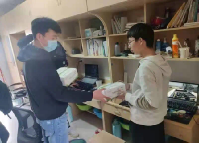 为同学们发放防疫物资——口罩,送去学校的温暖和关爱